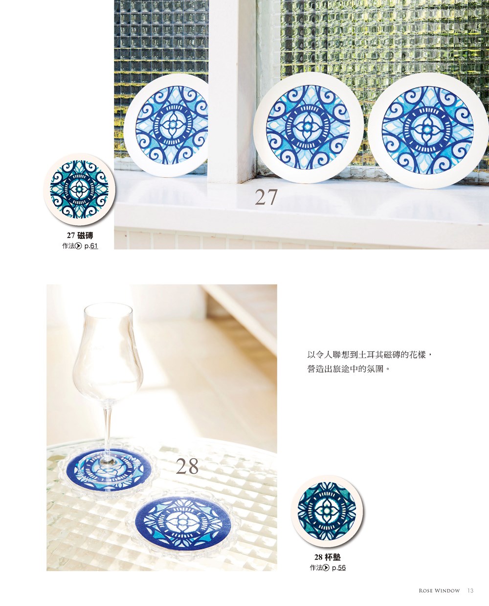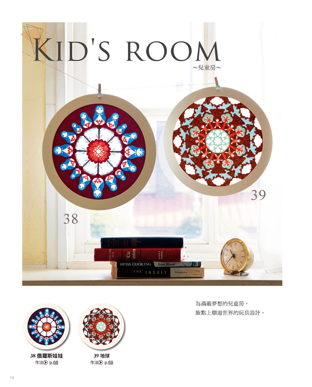 全書附錄完整作品紙型,除了可依作品配置的圖案&顏色實作,也可以嘗試搭配不同圖案或替換色彩,以充滿實驗精神的玩心,創作出自己的美麗玫瑰窗喔!