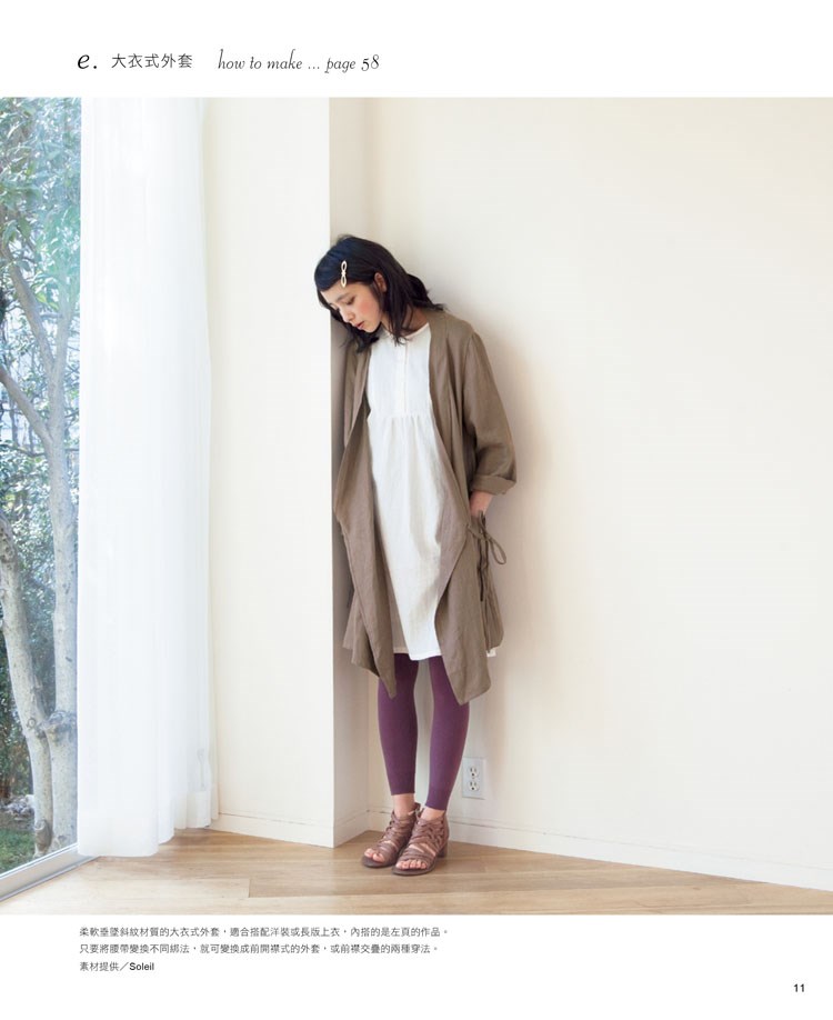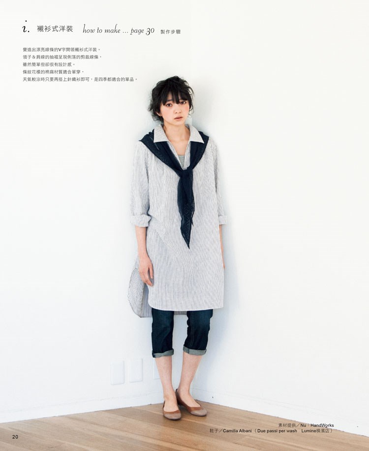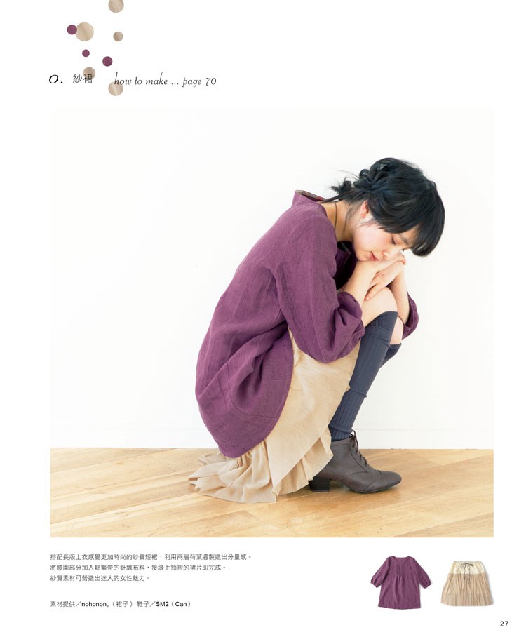 洋裝與長版上衣,是充滿女人味的魅力單品,你可以從書中找出心儀的款式,選擇自然輕柔的布料材質,讓自己的身體與外在都享受到美好的感受。