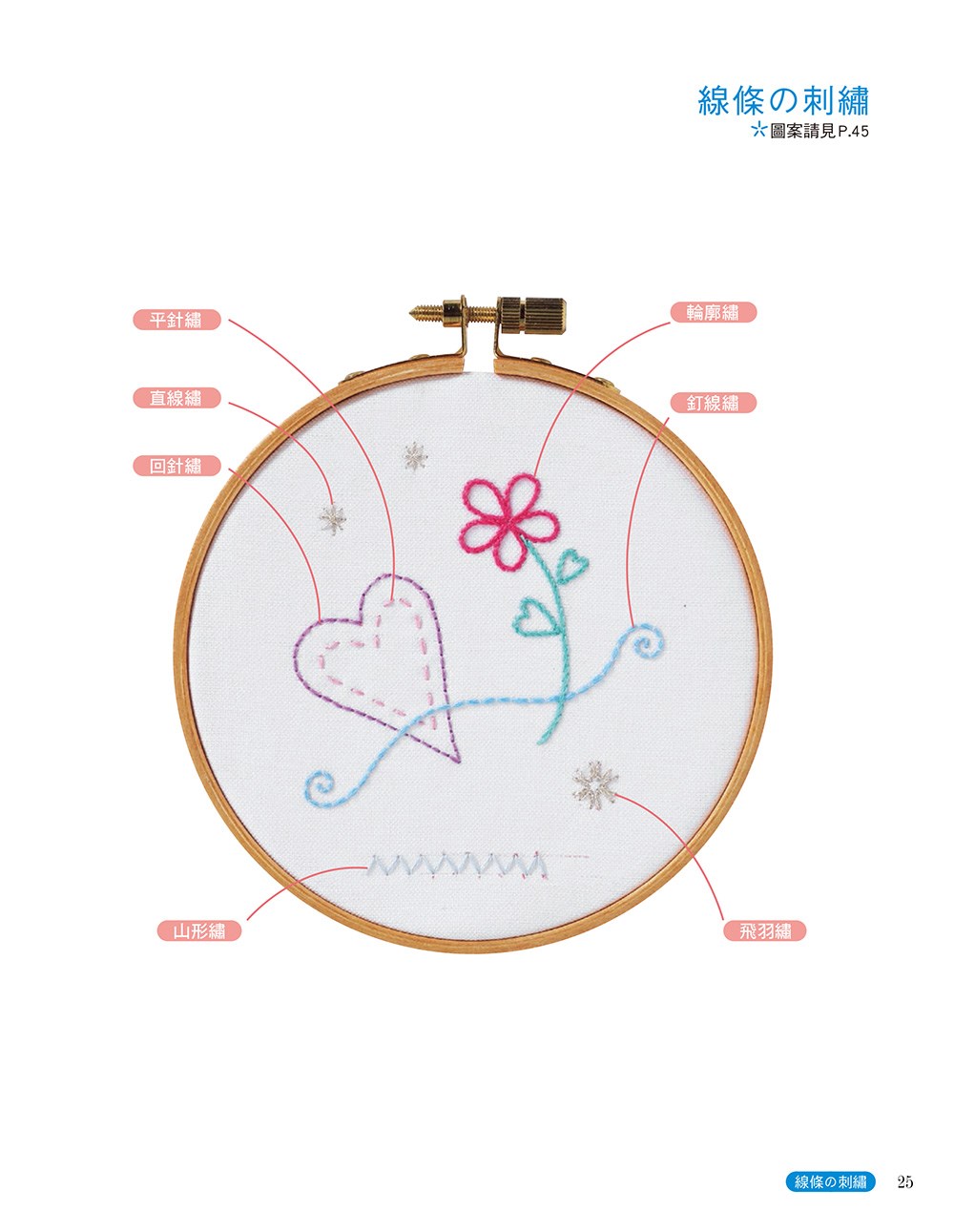 刺繡入門的第一本教學書!從繡線的種類、繡針的粗細、如何起針收針開始,到常用針法、繡得好看的小訣竅,以及完成作品的方法,即使完全沒有手作經驗,也能照著詳細的圖解一步一步完成可愛的刺繡,並且作成實用小物!