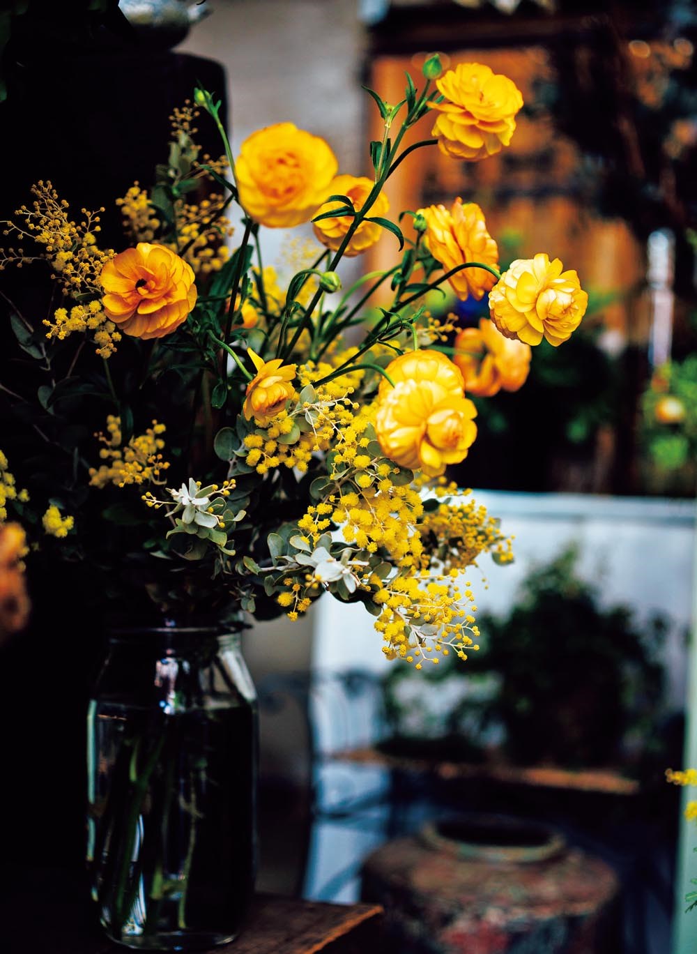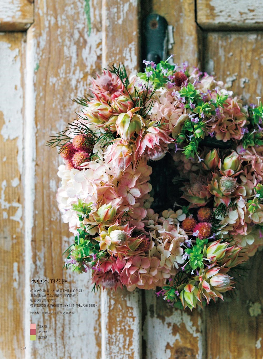 花藝設計其實和烹飪很像。今天要作的是法式?義式?地方菜?或是和風?先有個主題,再偶爾混搭不同風格,在玩味中烹調出自己的獨創料理。花藝設計亦同,在決定了主題之後,色彩的搭配、點綴色的比重、花材的選擇等,就會變得比較容易。調味到恰到好處的濃淡後,再加入一點點獨特的辛香料……要加入哪一種祕密的辛香料,就成為決定自我風格的主要關鍵了!