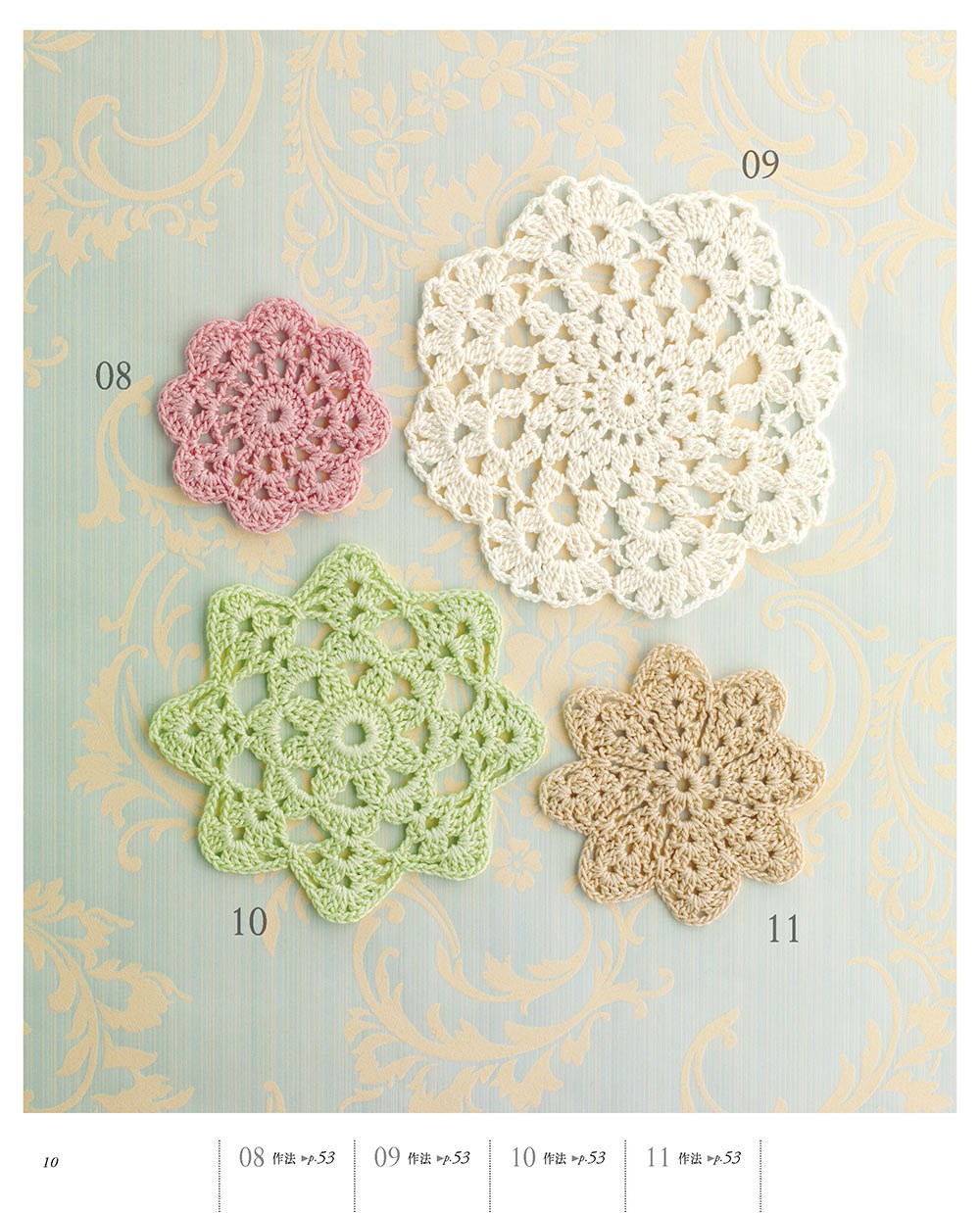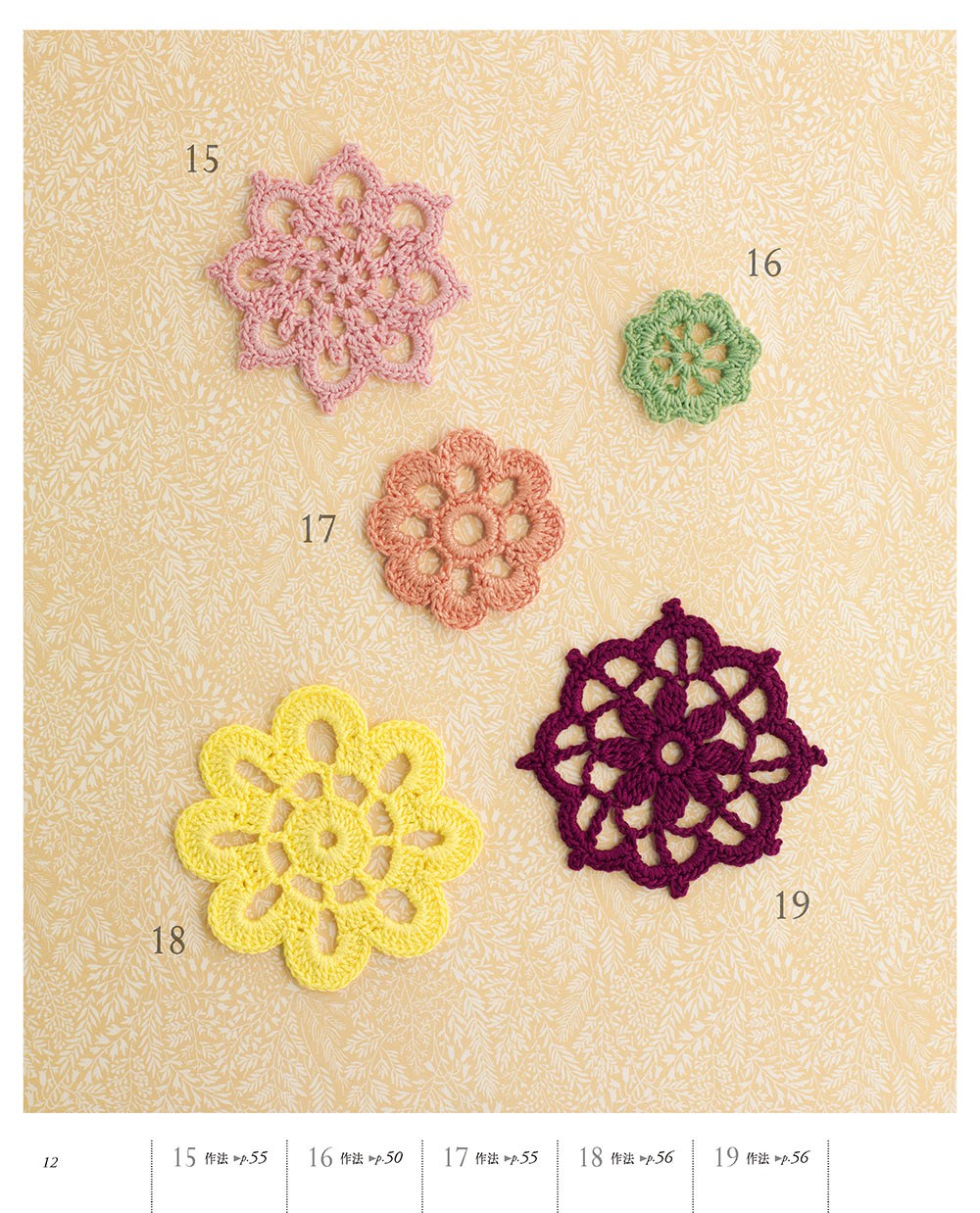 利用零碎的時間,累積輕巧的花樣織片們,完成獨一無二的花樣織品吧!