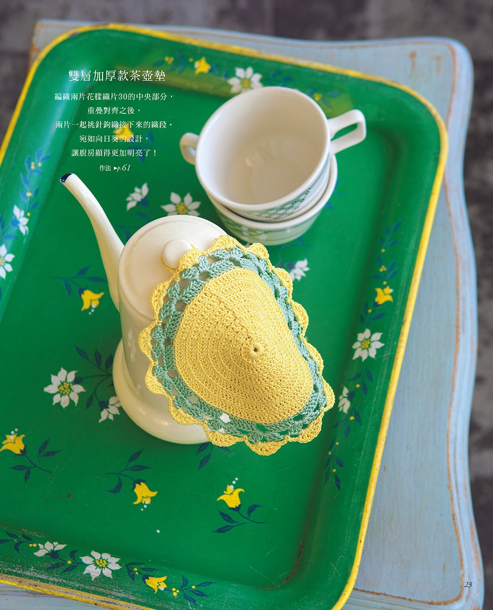 將小小片的織片拼接起來吧!於是,織片們化身為日常外出的手提包、披肩;居家使用膝上毯、桌飾、鍋墊;或是精巧的項鍊、袖口緣飾等。只要學會織片的拼接技巧,就能發揮創意,衍生出無限織物品項!
