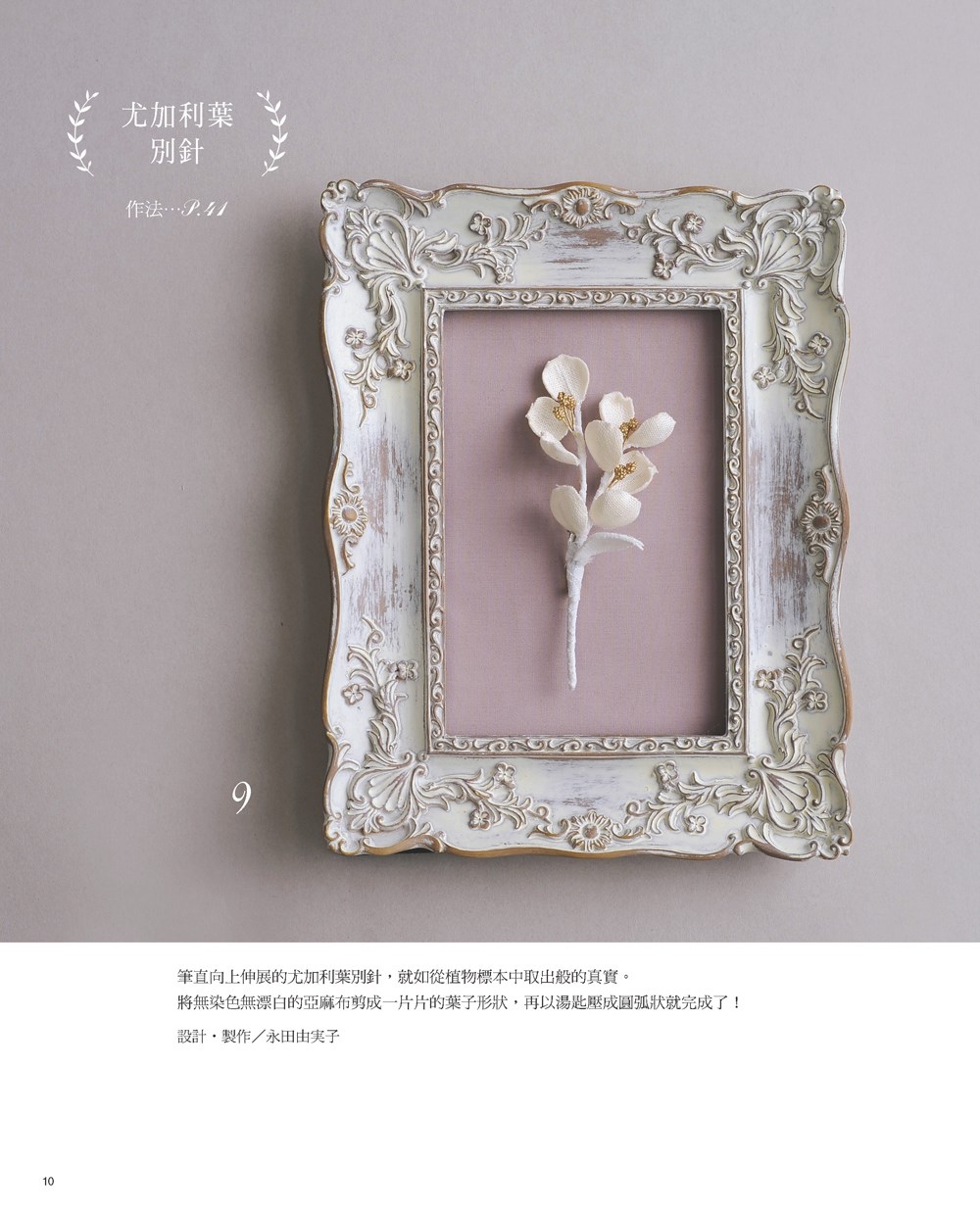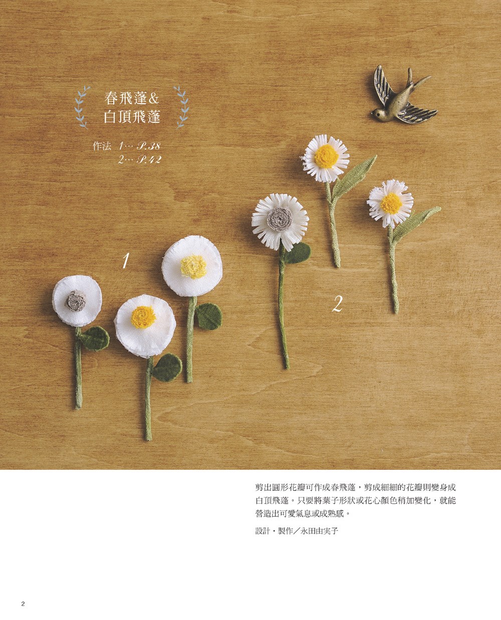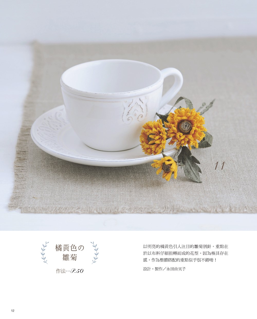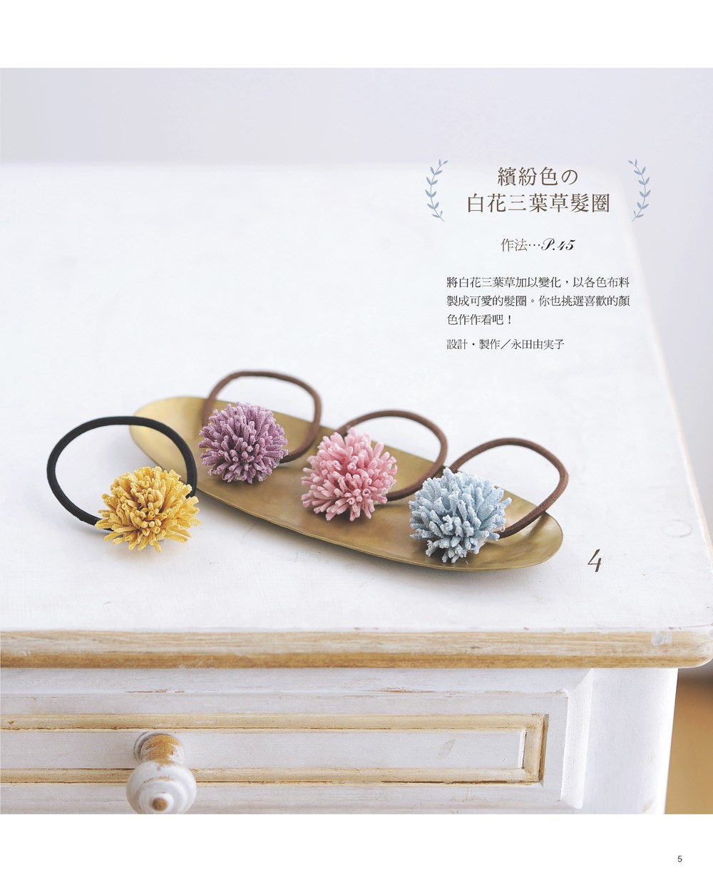 不需要使用「專業級」的特殊工具,只要經過手縫或黏合,就能作出生動的花形。請跟著本書簡單易懂的圖解教作,以膠水加工的方法為布料加上挺度&作出皺褶,以湯匙壓出自然圓弧狀的花瓣,以棉花揉成圓球再包覆布片,作出小巧圓滾的鈴蘭花……,從日常穿搭的休閒配飾,到適合精心打扮時配戴的優雅花飾,挑選喜歡的配飾立刻動手作作看吧!