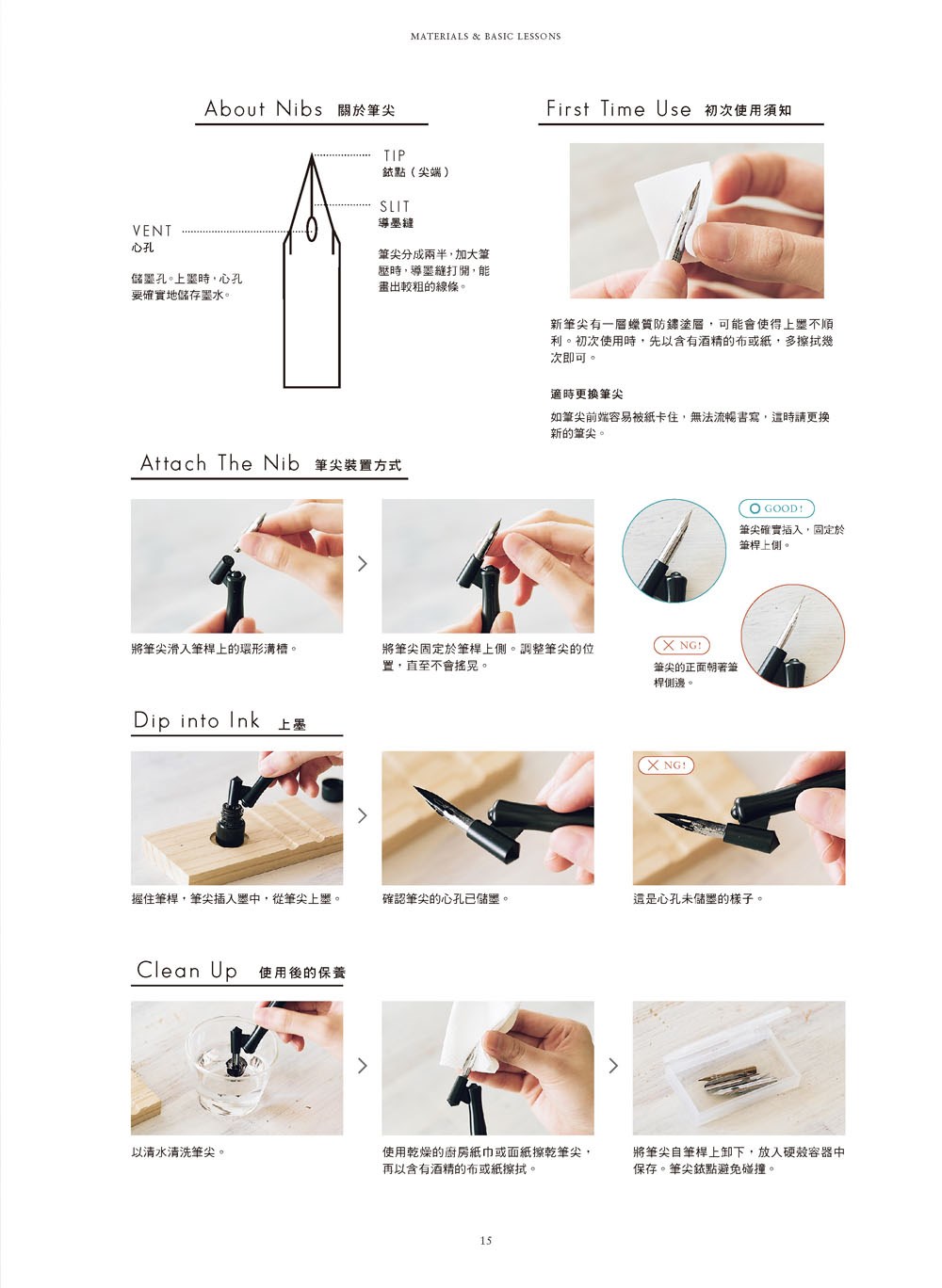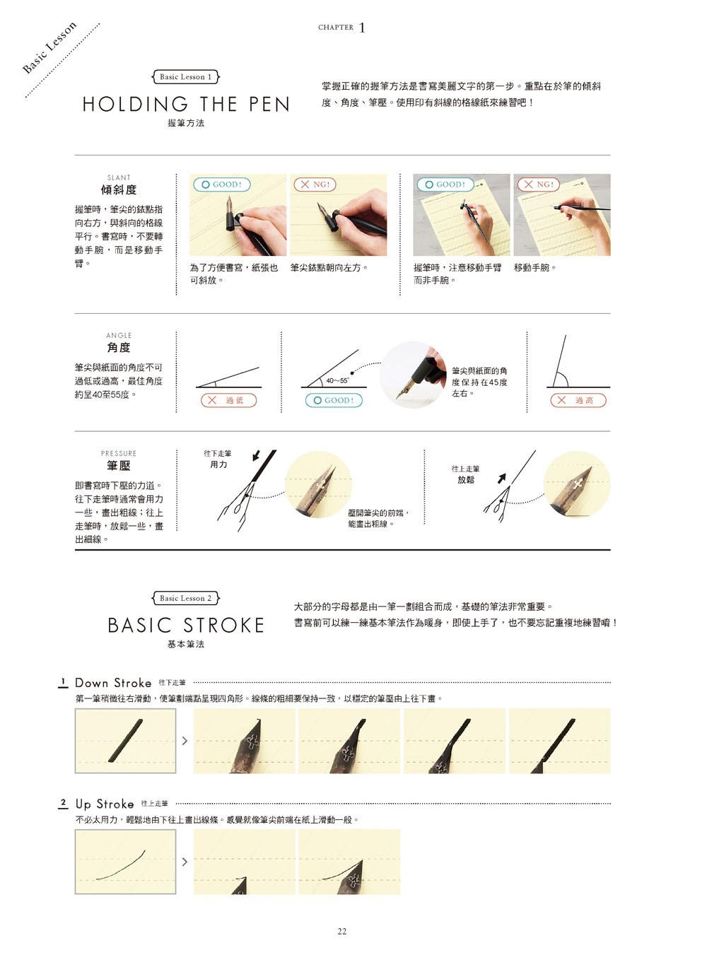 認識筆尖構造,學會筆桿與筆尖的組合方法,掌握正確的書寫角度、筆法、筆壓力道,認識各種墨水、紙張的特質……,不必害怕學不會!Veronica Halim細心教你從基礎開始,逐步進入文字的美學殿堂。