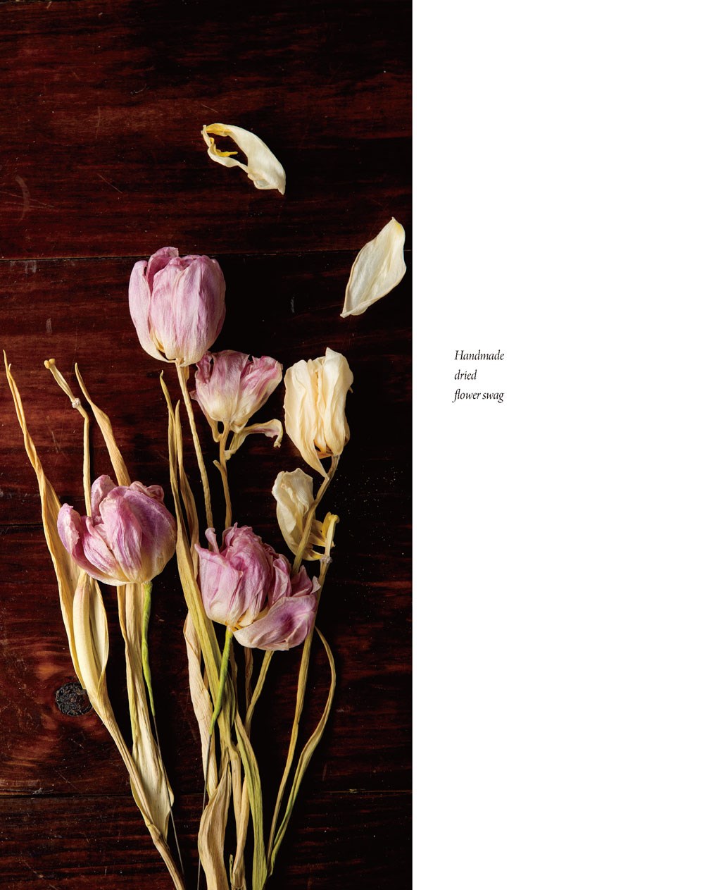 選自季節花草,一束束地加入對地景、對季節、對收禮者的想像……採自國外常見裝飾於大門或牆面的垂掛式花飾swag,是Kristen老師以乾燥花草,為居家空間作出的最新呈現。
