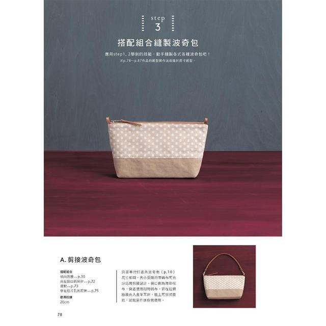 日本人氣口金包手作研究家──越膳夕香,自推出<<自己畫紙型!口金包設計打版圖解全書>>大受好評後,再度出版姐妹作<<自己畫紙型!拉鍊包設計打版圖解全書>>。需要縫製拉鍊的作品,一直都是初學者感到困擾的款式,本書作者特別將拉鍊包分類,整理成實用的紙型打版教科書,讓您能夠簡單的運用,作出符合需要版型的各式拉鍊包!