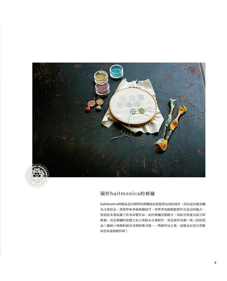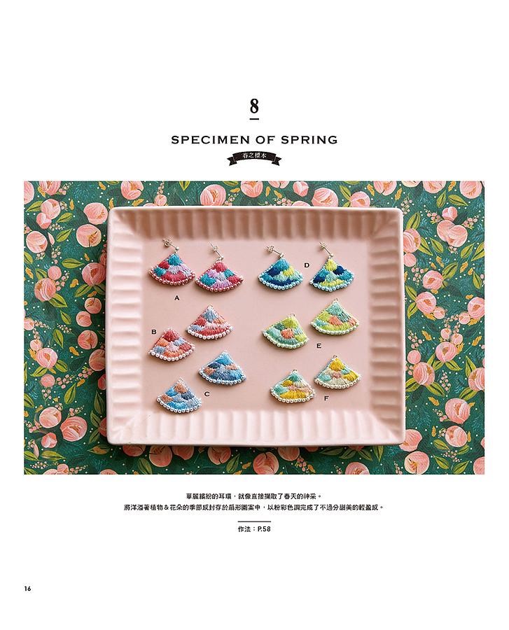 由於刺繡面積較小,因此可快速完成立即配戴,也令人忍不住想要嘗試各種設計&配色。當然,你也可以自由應用變化,作成胸針、項鍊墜飾、小掛飾……